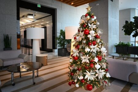 Miami Christmas Lights offers a stunning selection of commercial Christmas trees designed to make a bold statement in any space. Our collection includes everything from towering outdoor Christmas trees up to 70 feet tall to elegant indoor trees adorned with custom, designer décor. Whether you're looking for a classic holiday centerpiece or a modern twist, we tailor each installation to fit your brand, space, and holiday vision.